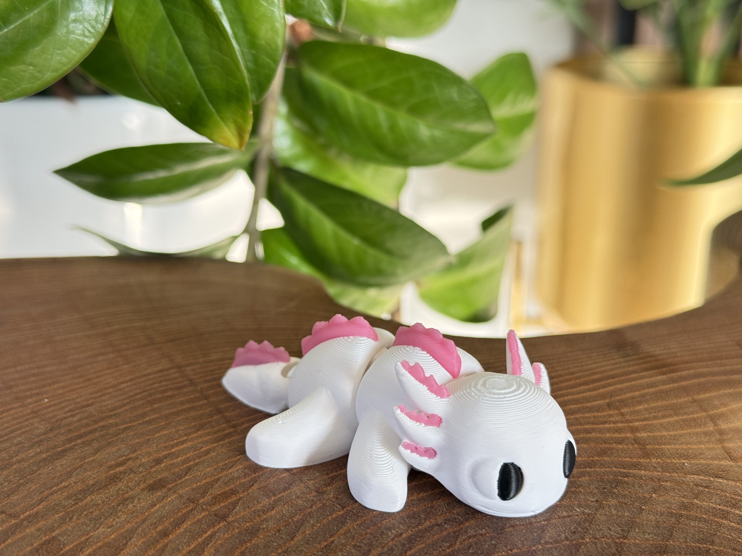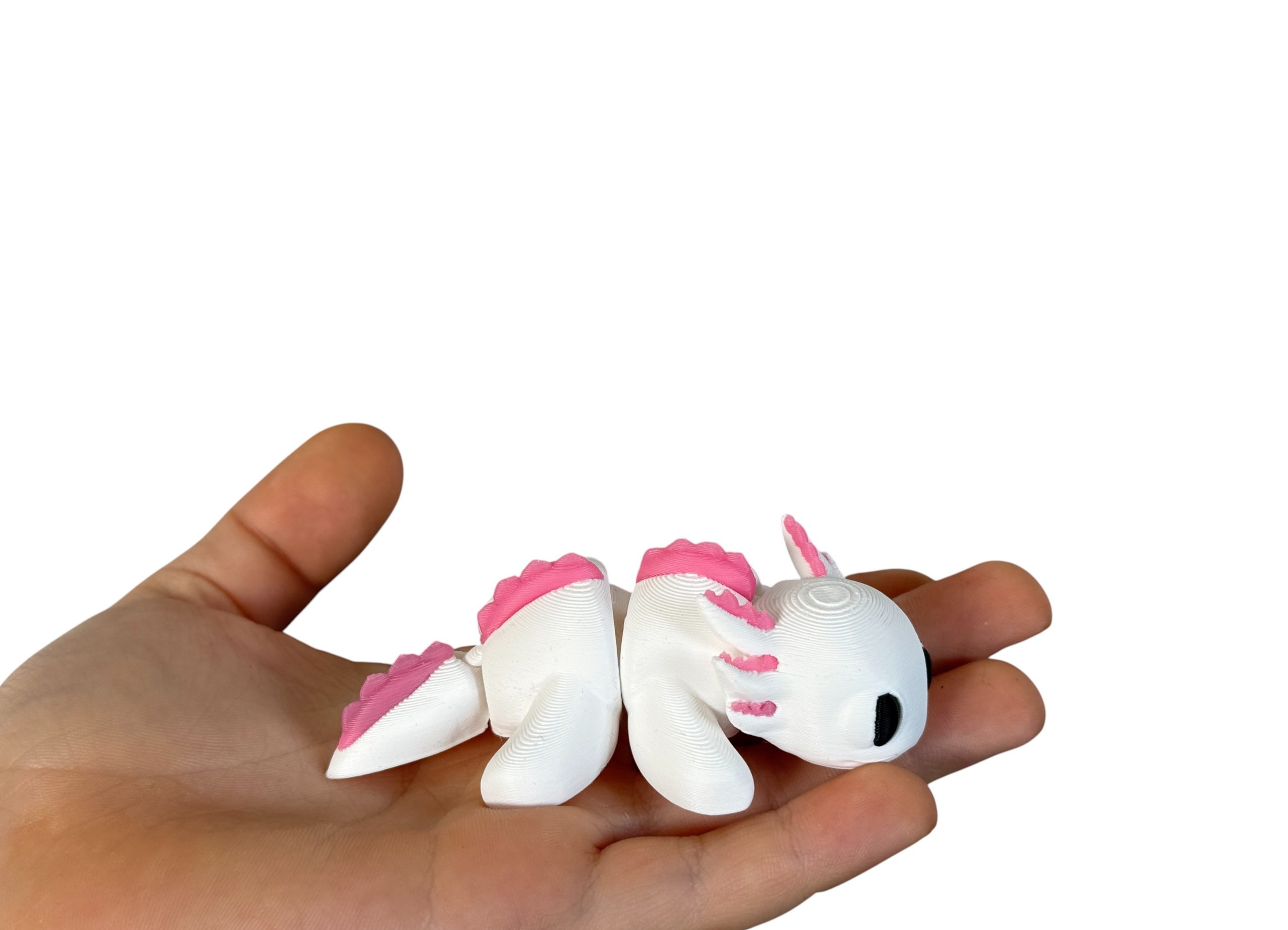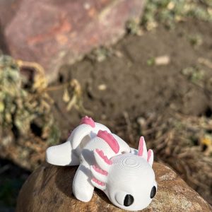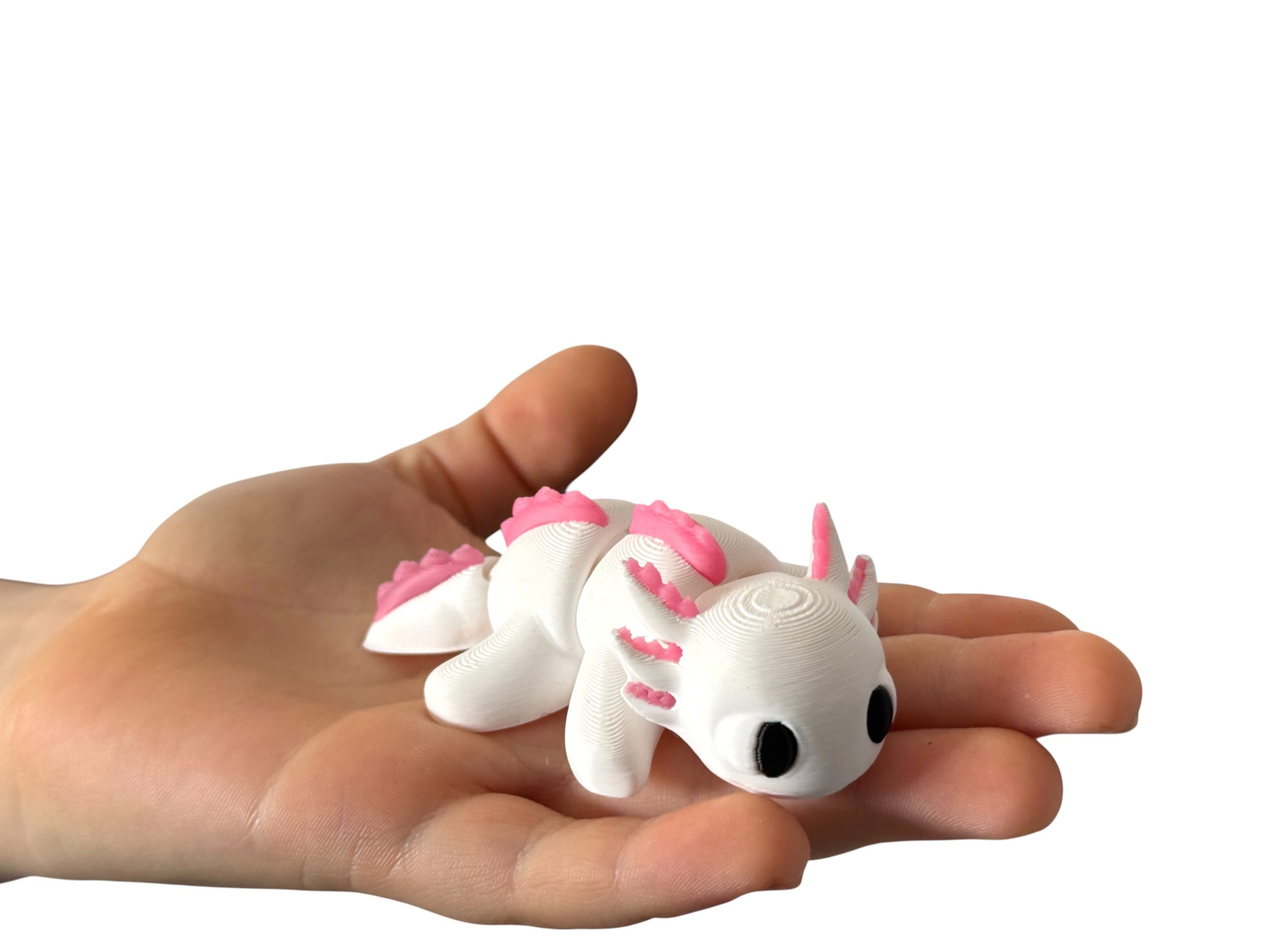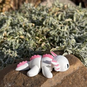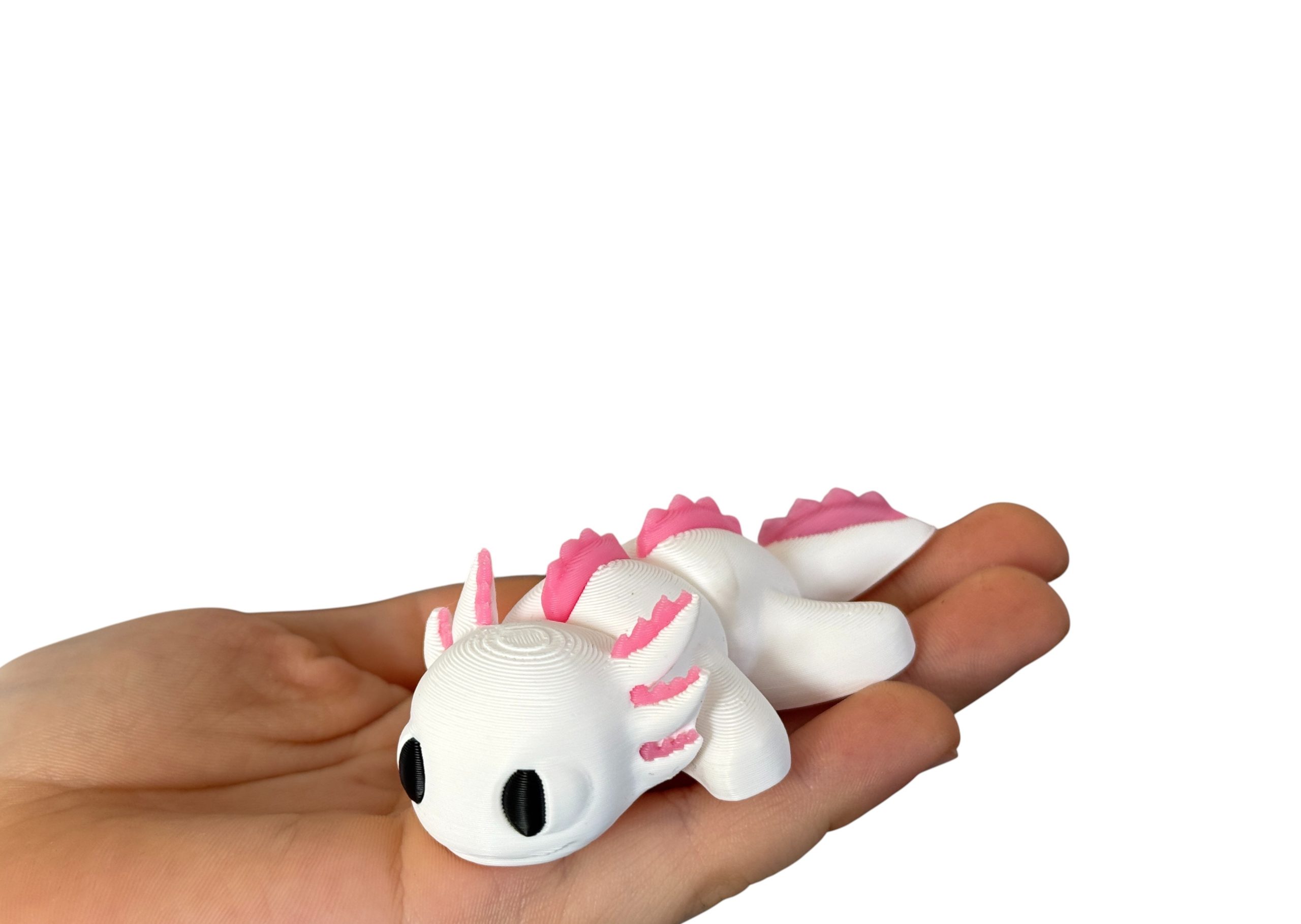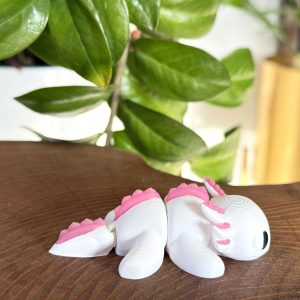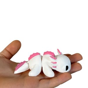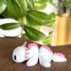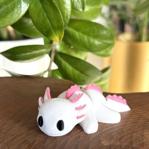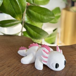 Mini aksolotl 3D w biało-różowej kolorystyce to słodka i estetyczna figurka o wyjątkowym charakterze. Przegubowa konstrukcja umożliwia delikatne układanie, a staranne wykonanie i czarne oczka nadają jej wyjątkowego uroku. Idealna jako dekoracja, prezent lub element kolekcji.