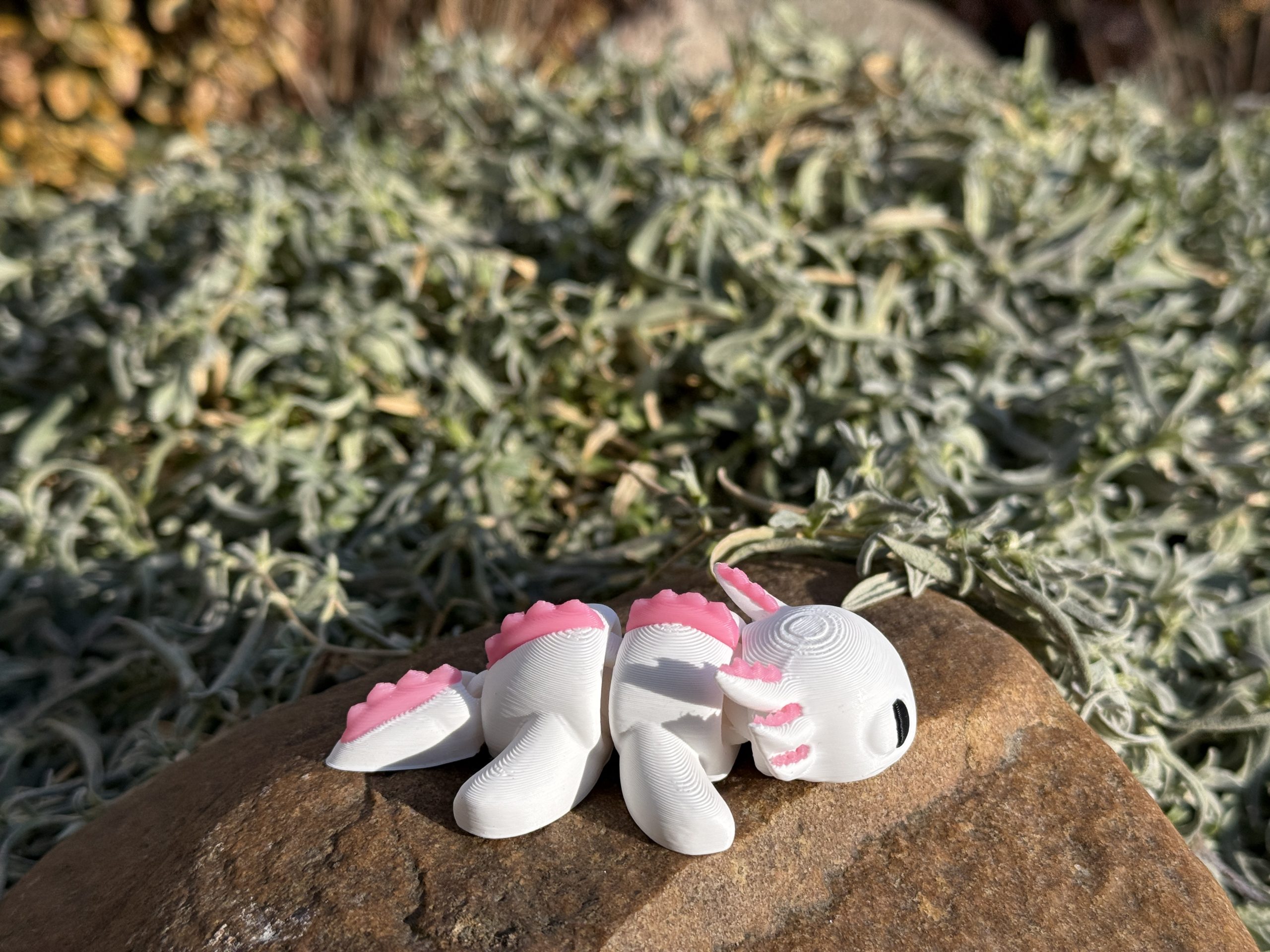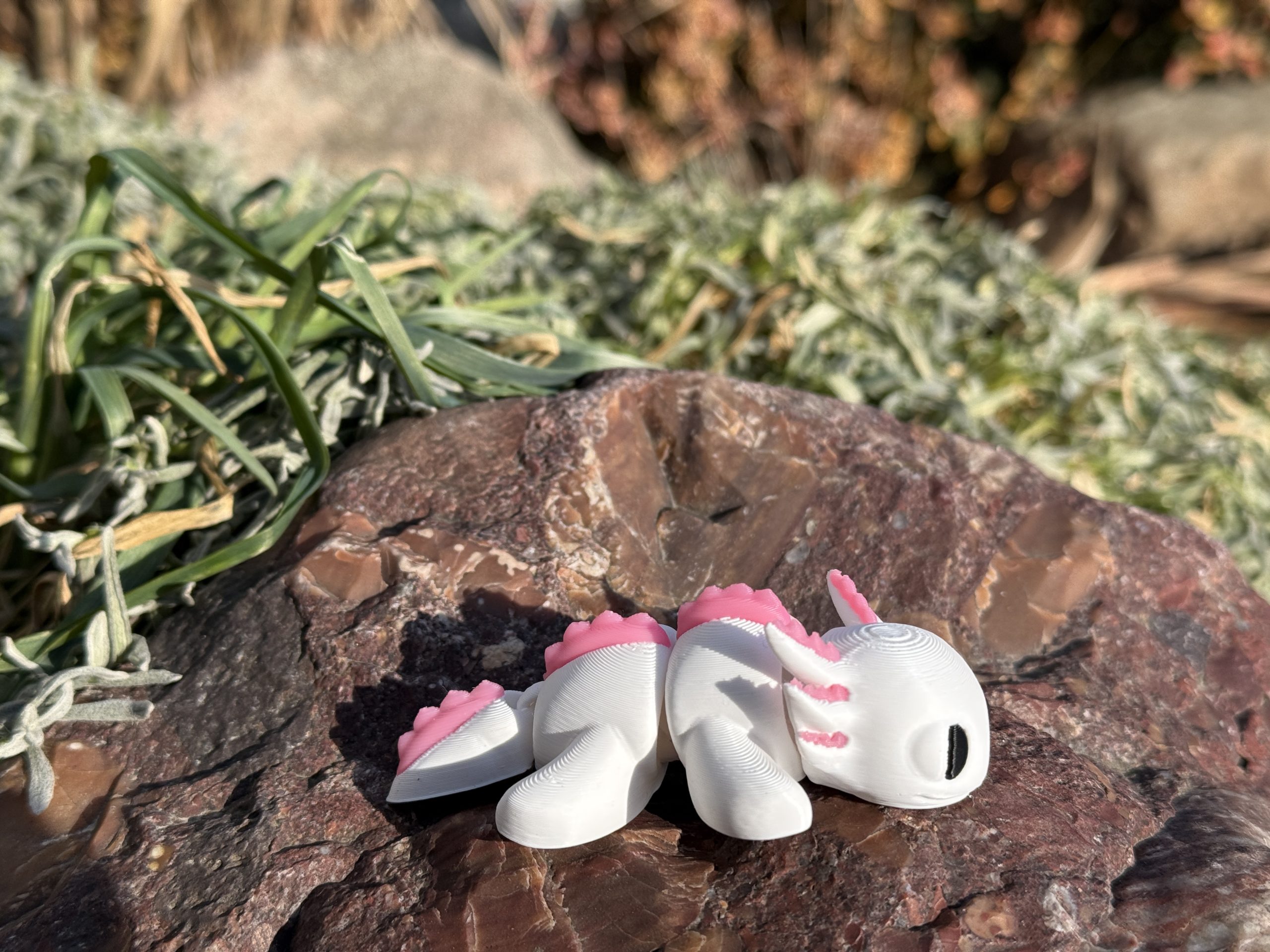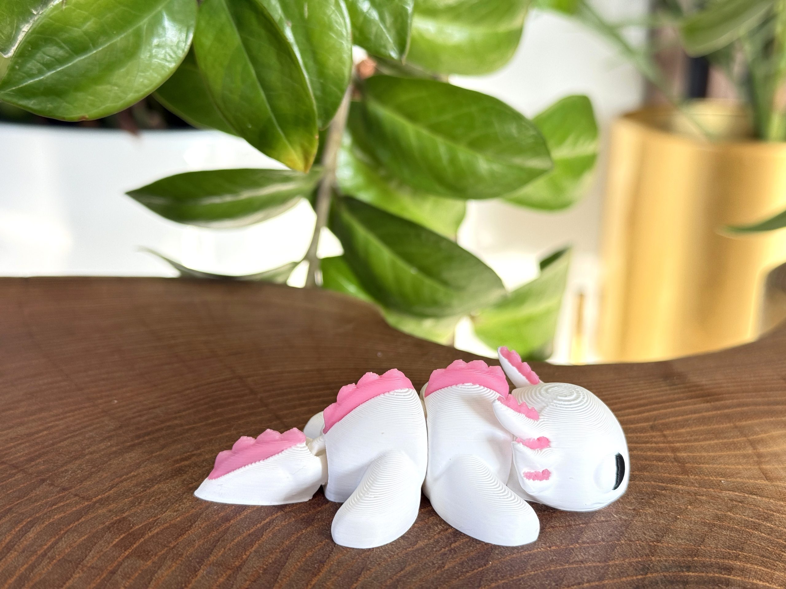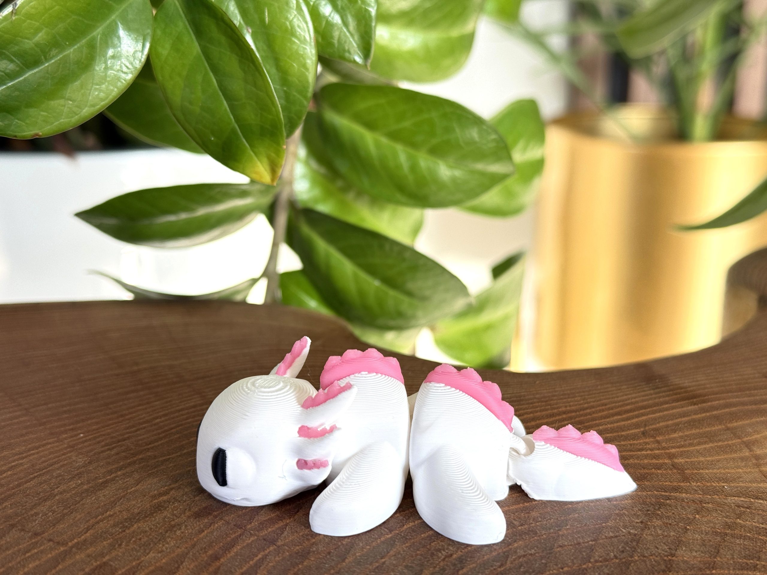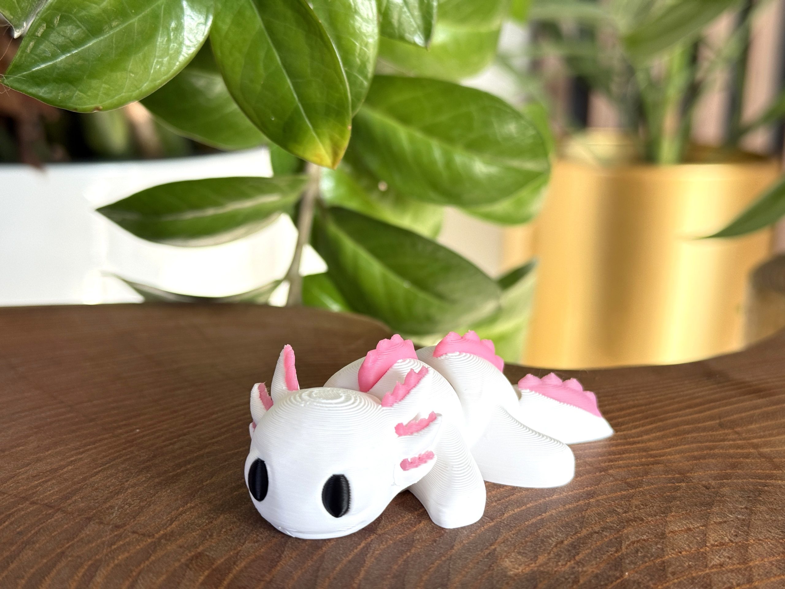 Mini aksolotl 3D w biało-różowej kolorystyce to słodka i estetyczna figurka o wyjątkowym charakterze. Przegubowa konstrukcja umożliwia delikatne układanie, a staranne wykonanie i czarne oczka nadają jej wyjątkowego uroku. Idealna jako dekoracja, prezent lub element kolekcji.