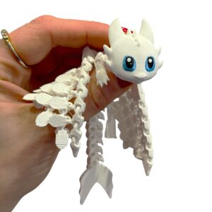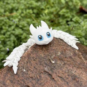 Elastyczna Biała Furia to piękna figurka pełna ruchu, która łączy świetny wygląd, płynność przegubów oraz trwały, ekologiczny materiał PLA+. Idealna do zabawy, wyginania i układania w rękach — po prostu totalny sztos dla każdego, kto kocha magiczne smoki.