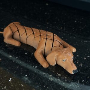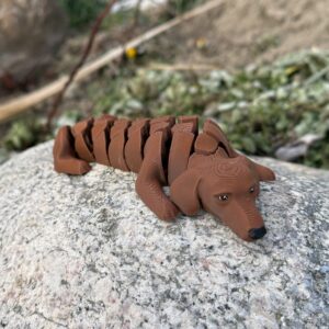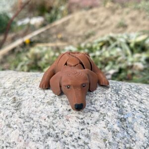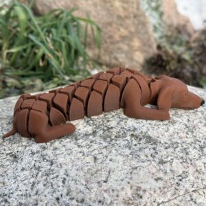 Segmentowy jamnik 3D to figurka z humorem i osobowością. Ruchoma konstrukcja podkreśla jego długi kształt, a zabawkowy charakter sprawia, że trudno się do niego nie uśmiechnąć. To idealny gadżet dla tych, którzy lubią rzeczy nietypowe, sympatyczne i wykonane z pomysłem.