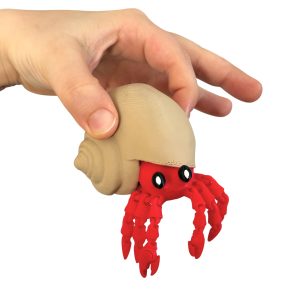 Krab pustelnik w muszli to słodka, elastyczna figurka, która nie jest sztywna ani pozowana — jej urok polega na naturalnym ruchu segmentów. Ruchome szczypce i odnóża sprawiają, że aż chce się ją wziąć do ręki i pobawić się jej płynną formą. Idealna dla dzieci, dorosłych i kolekcjonerów.