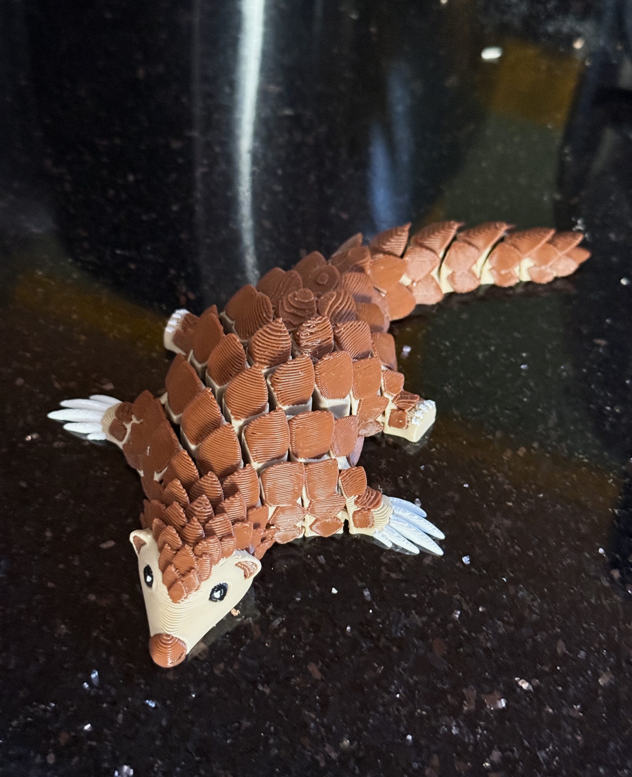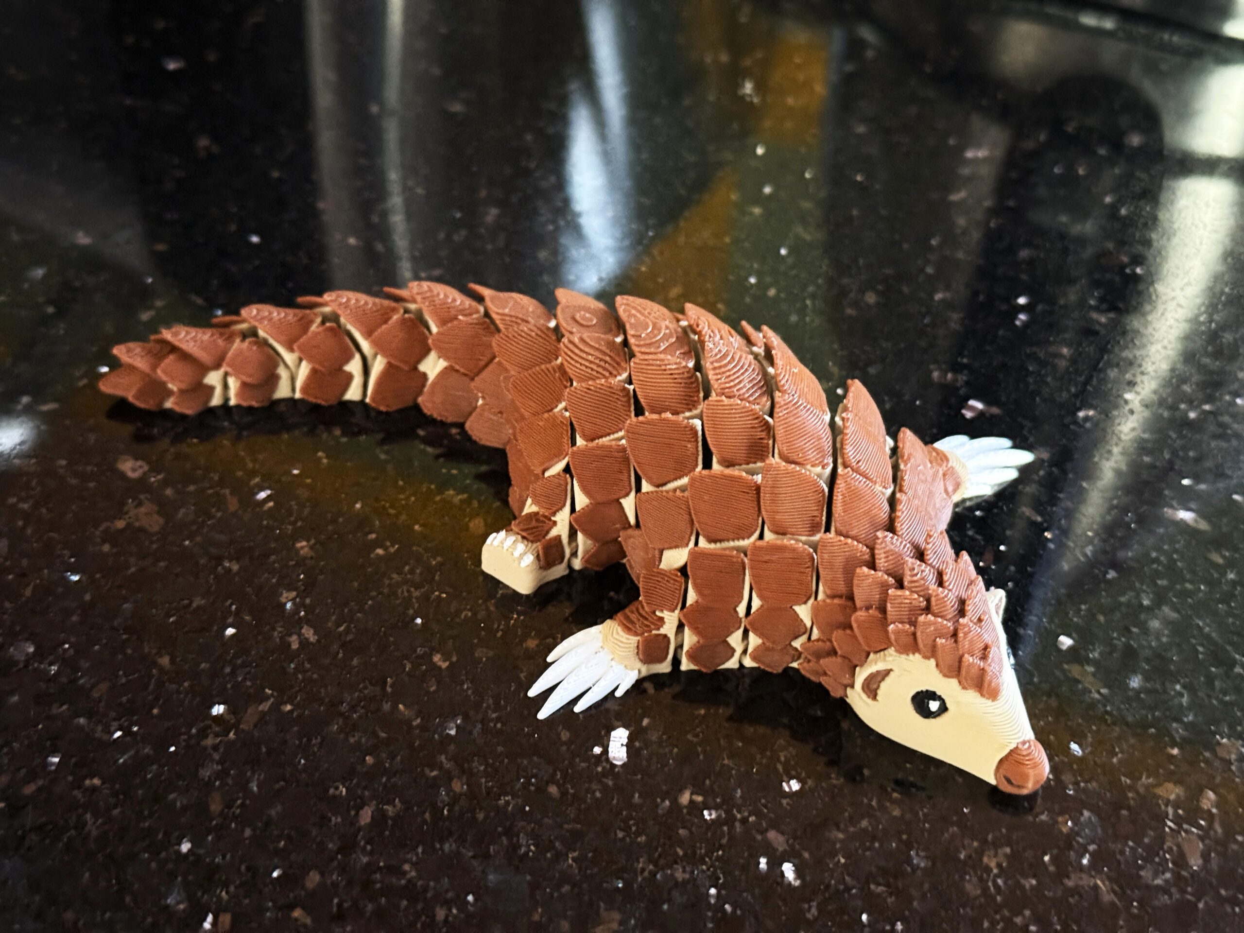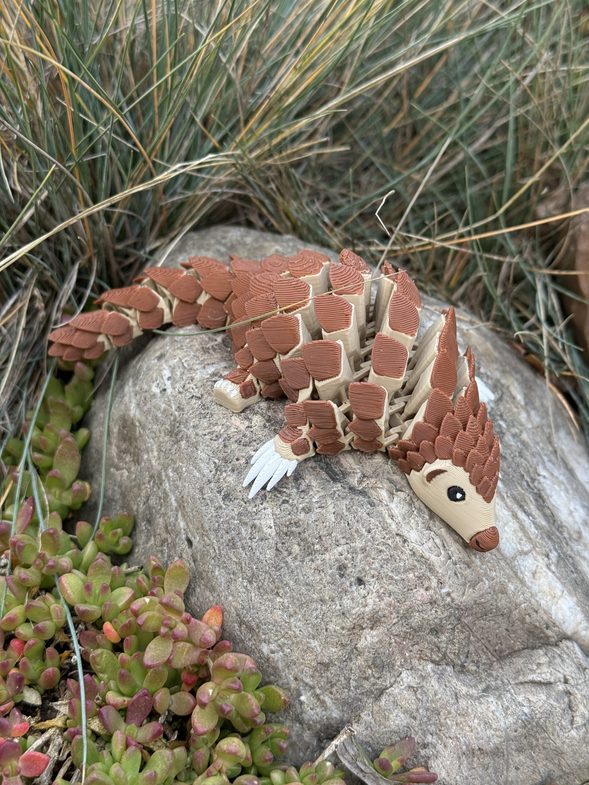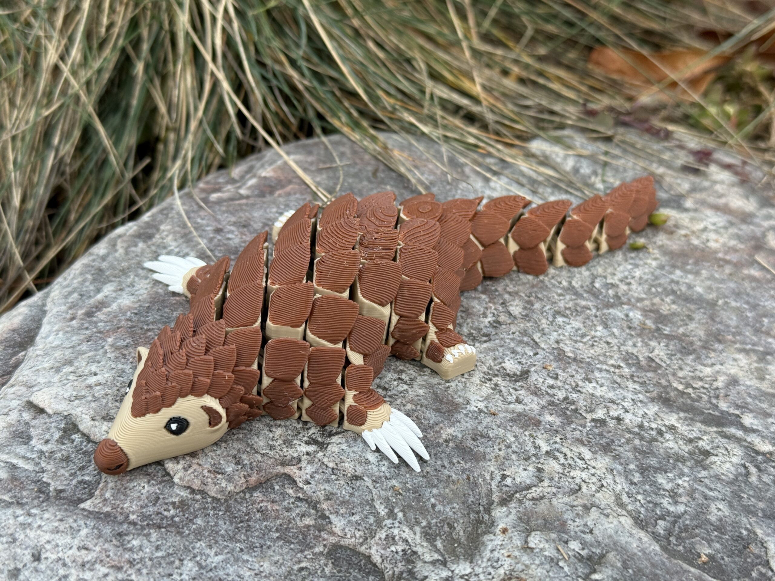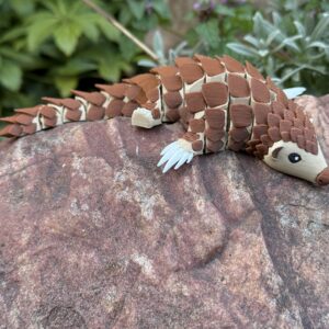 Ten łuskowiec w nowej, wielokolorowej odsłonie to połączenie uroku, nowoczesnego druku 3D i pięknie wyeksponowanych detali. Segmentowa konstrukcja sprawia, że figurka żyje w dłoniach, a kolorowe łuski przyciągają wzrok i nadają jej wyjątkowego charakteru. To idealny wybór dla każdego, kto szuka czegoś słodkiego, pięknego i naprawdę oryginalnego.