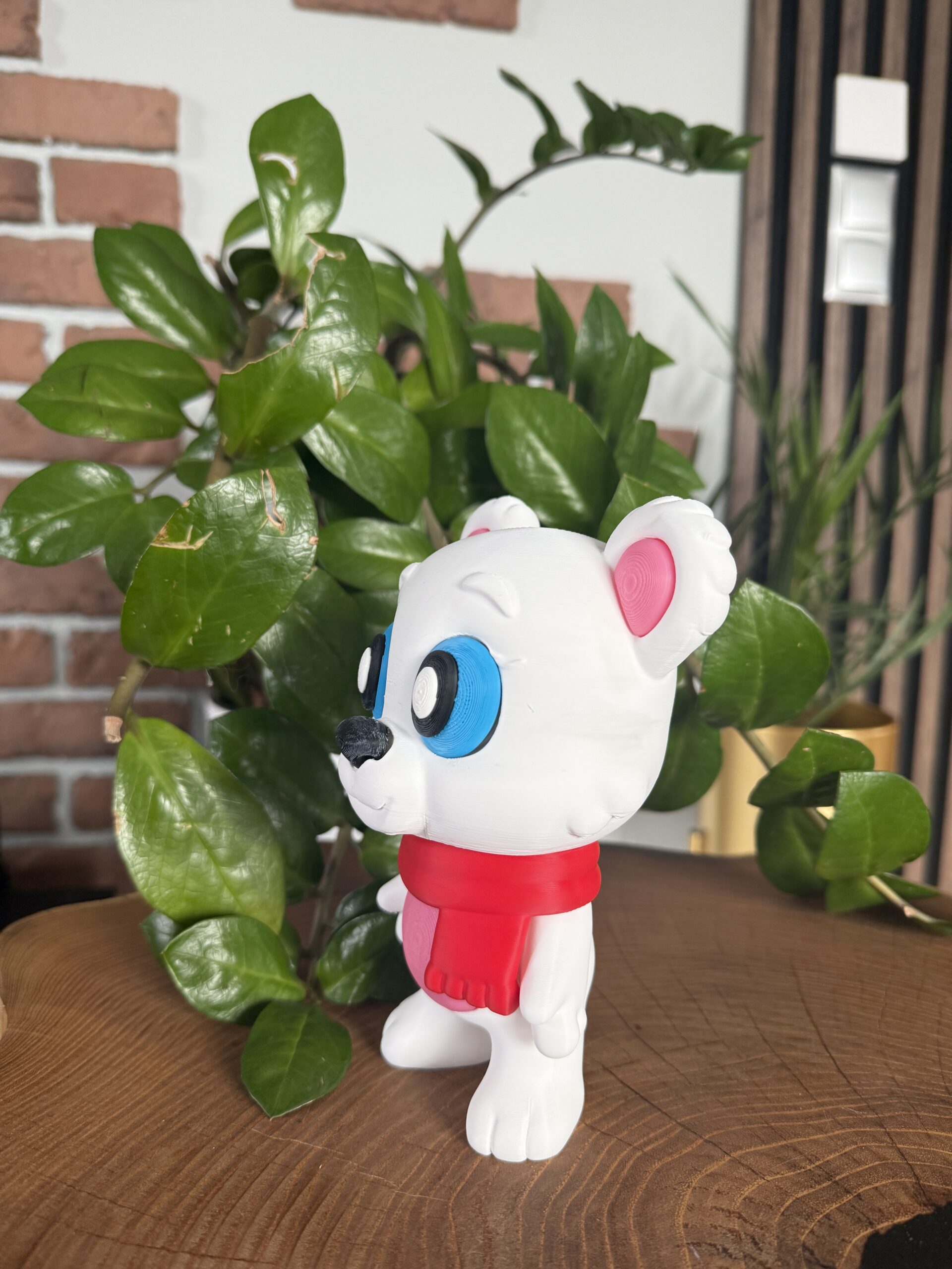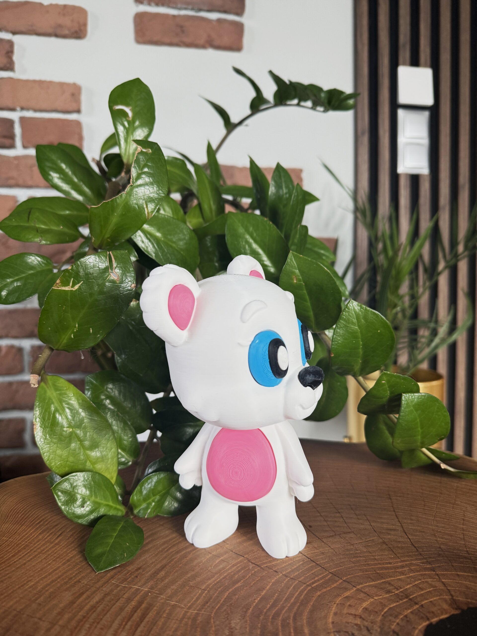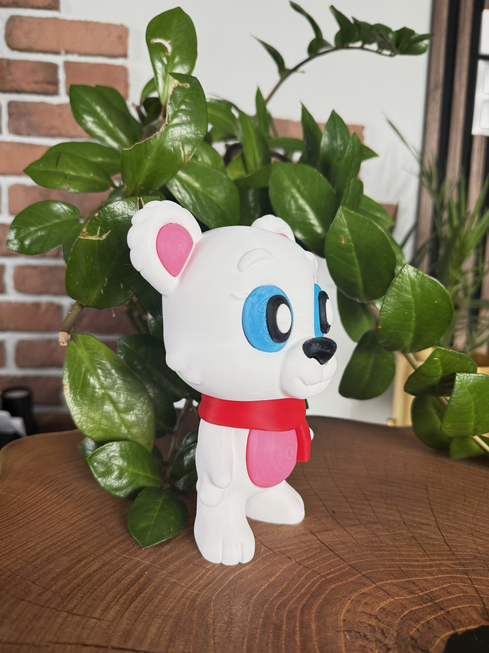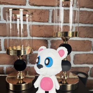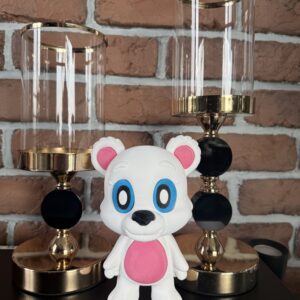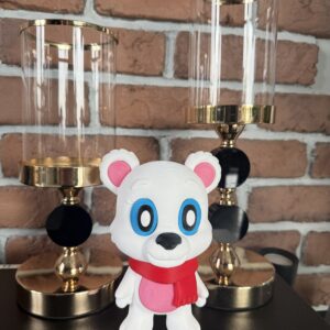 Duży miś 3D to urocza, starannie wykonana figurka dekoracyjna o ciepłym i przyjaznym charakterze. Ruchoma głowa, zdejmowany szalik oraz możliwość delikatnego poruszania głową nadają figurce wyjątkowej atrakcyjności. Dzięki dużemu rozmiarowi i estetycznemu wykonaniu miś doskonale sprawdzi się jako ozdoba pokoju dziecka lub wyjątkowy prezent.