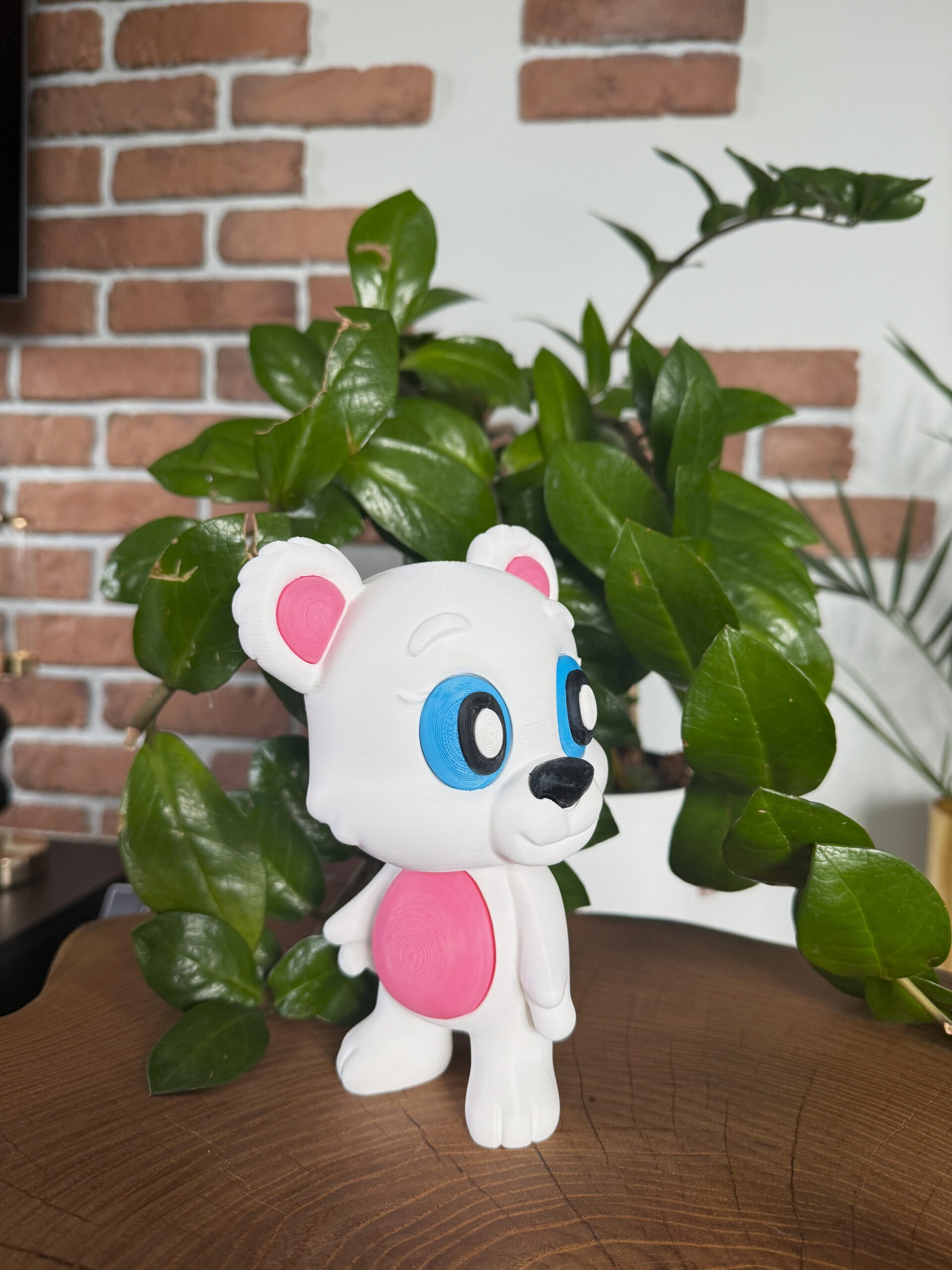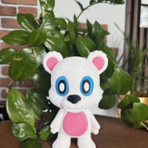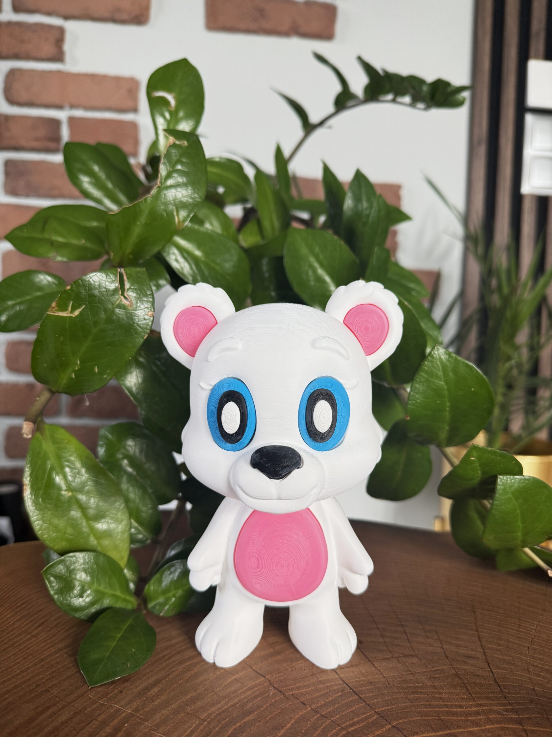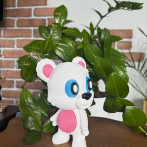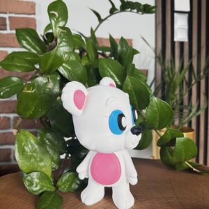 - Słodki, przyjazny wygląd misia.