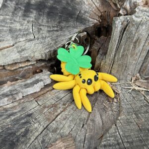 Przegubowy Pajączek Skakun z koniczynką to uroczy, ruchomy towarzysz, który łączy praktyczność i symbol szczęścia w jednej figurce. Idealny jako brelok, mini figurka lub prezent – zawsze wywoła uśmiech i doda pozytywnej energii!