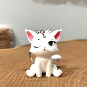 Siedzący kotek puszczający oczko to urocza i zabawna mini figurka 3D w formie breloka, która łączy estetyczny wygląd z solidnym wykonaniem. Figlarny wyraz pyszczka, kompaktowy rozmiar oraz precyzja druku sprawiają, że jest to idealny dodatek na co dzień lub wyjątkowy drobny prezent. Wykonany z trwałego PLA+ w polskiej manufakturze druku 3D, zachwyca jakością i charakterem.