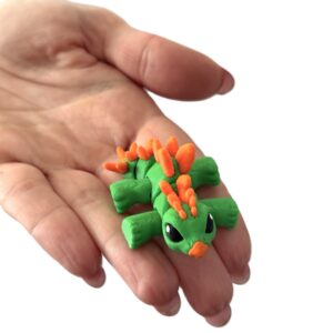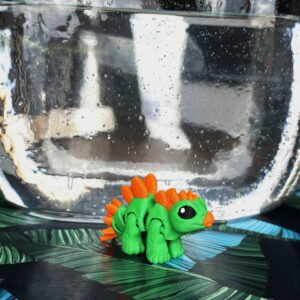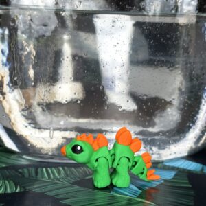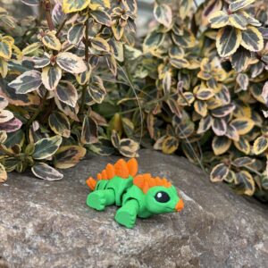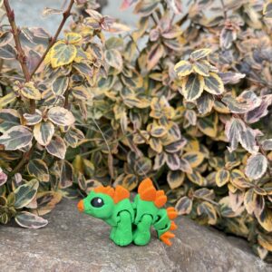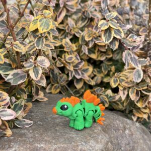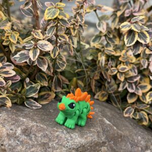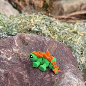 Mini Dino Minimals to przegubowa figurka 3D, która łączy minimalistyczną formę z uroczym, dinozaurowym charakterem. Ruchomy tułów i odnóża pozwalają na ustawienie figurki w różnych pozycjach, nadając jej życia i naturalności. Zielono-pomarańczowa kolorystyka oraz wykonanie w polskiej manufakturze druku 3D gwarantują wysoką jakość i wyjątkowy wygląd. Idealna do kolekcji, na prezent lub jako subtelna dekoracja.
