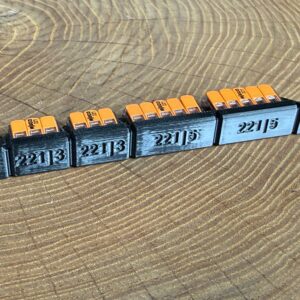 - Kompatybilność: przeznaczona do popularnych złączek WAGO 221-415 // 221-413 każda wchodzi na wcisk, bez luzów i bez potrzeby dodatkowych zaczepów.