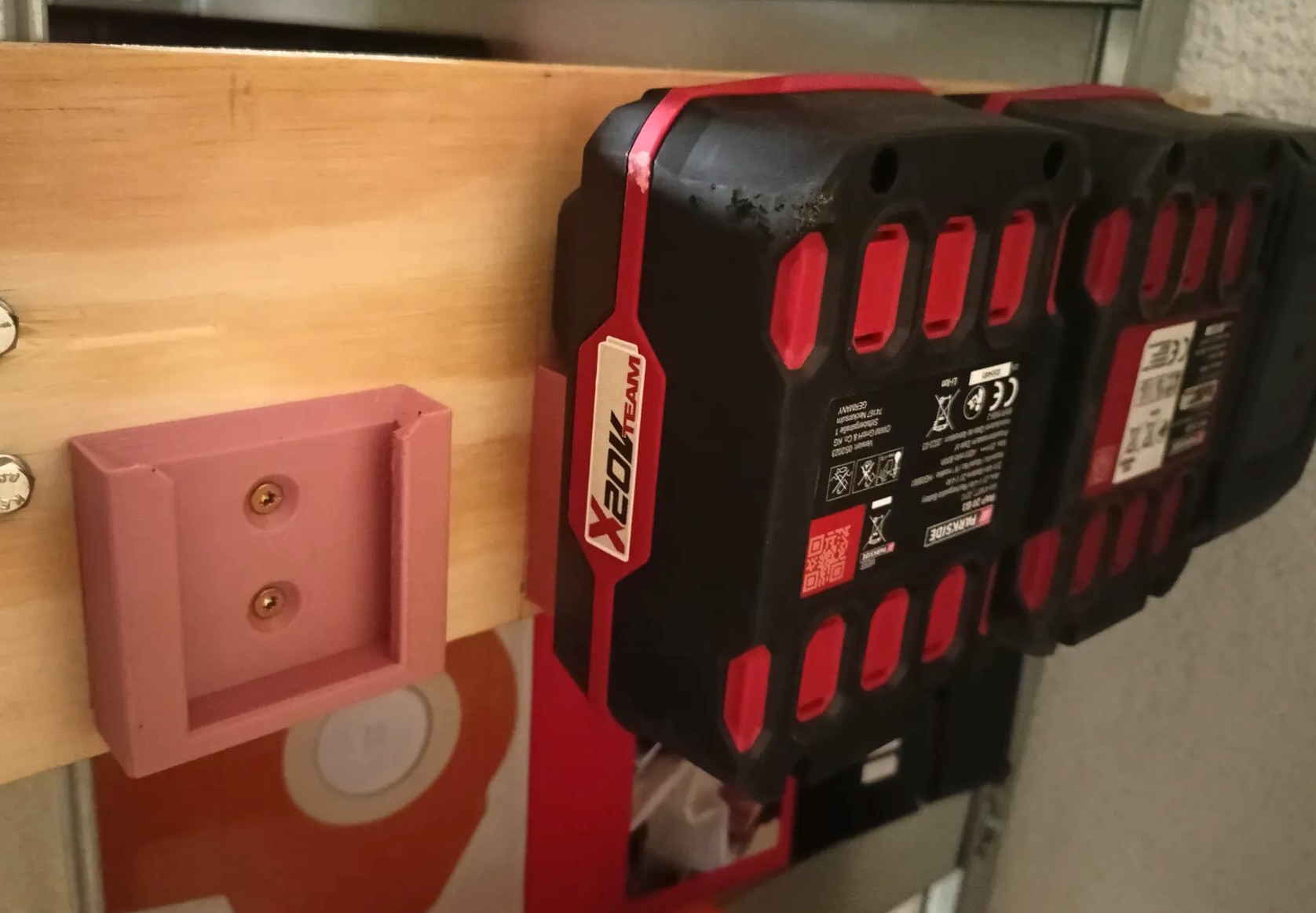 Ten uchwyt do akumulatorów Parkside X20V to prosty, ale genialny sposób na organizację i bezpieczeństwo sprzętu.